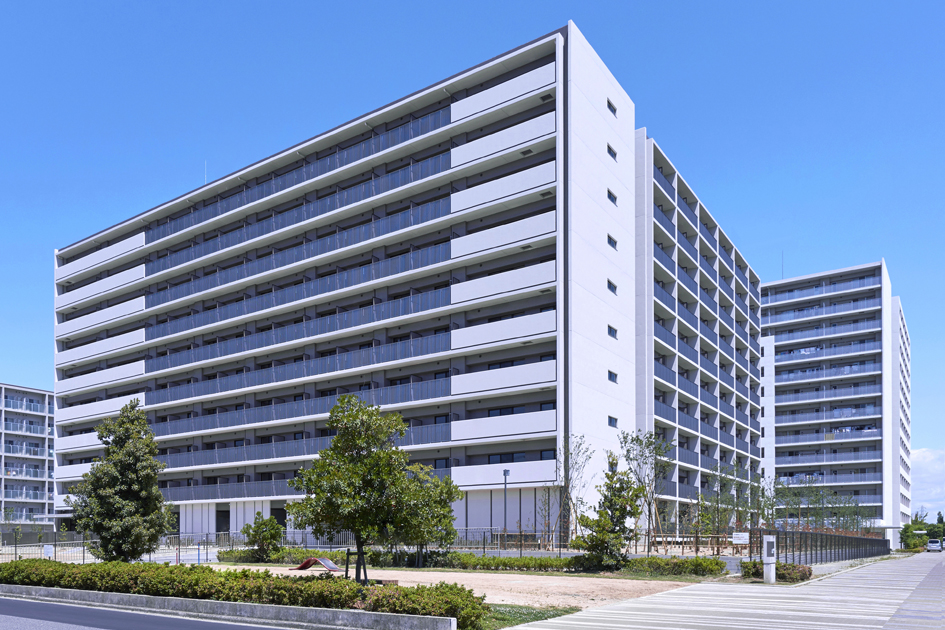 外観は近隣の住宅地や金岡公園の景観に配慮したシンプルで落ち着きあるものとし、スマートな印象を与えるデザインとしています。