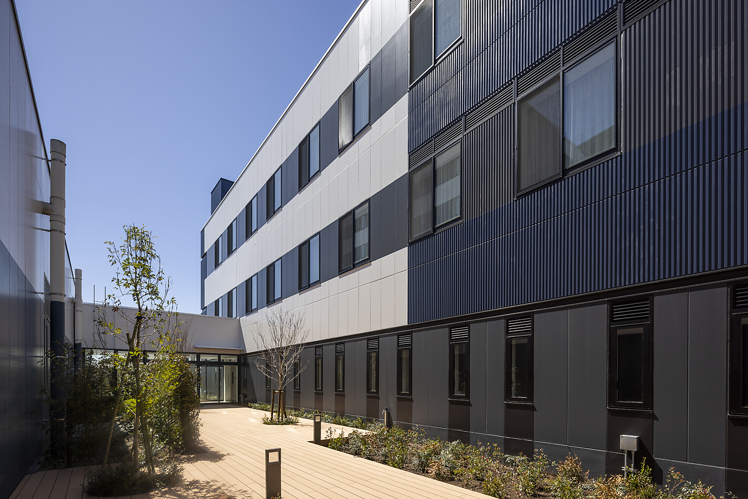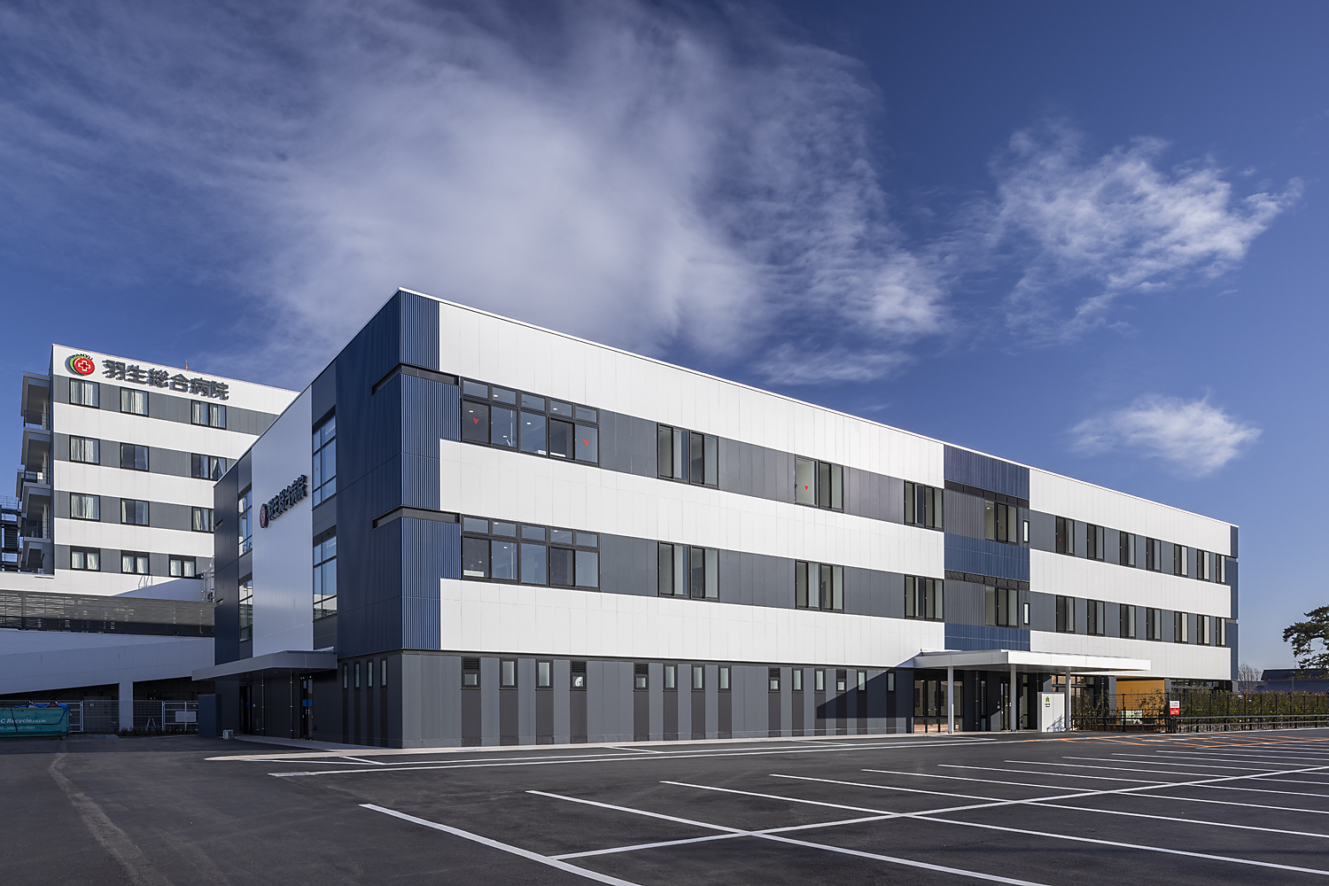 本計画は埼玉県地域医療構想において特に不足が推計されている回復期機能を担う病床(回復期リハビリテーション、地域包括ケア)を80 床整備する運びとなったため、既存棟に増築する形で整備しました。また、別敷地にあった保育園を併設させると共に羽生市からの要望を受け病児保育室も整備することとなり、地域と共に歩み続ける病院の増築計画です。
