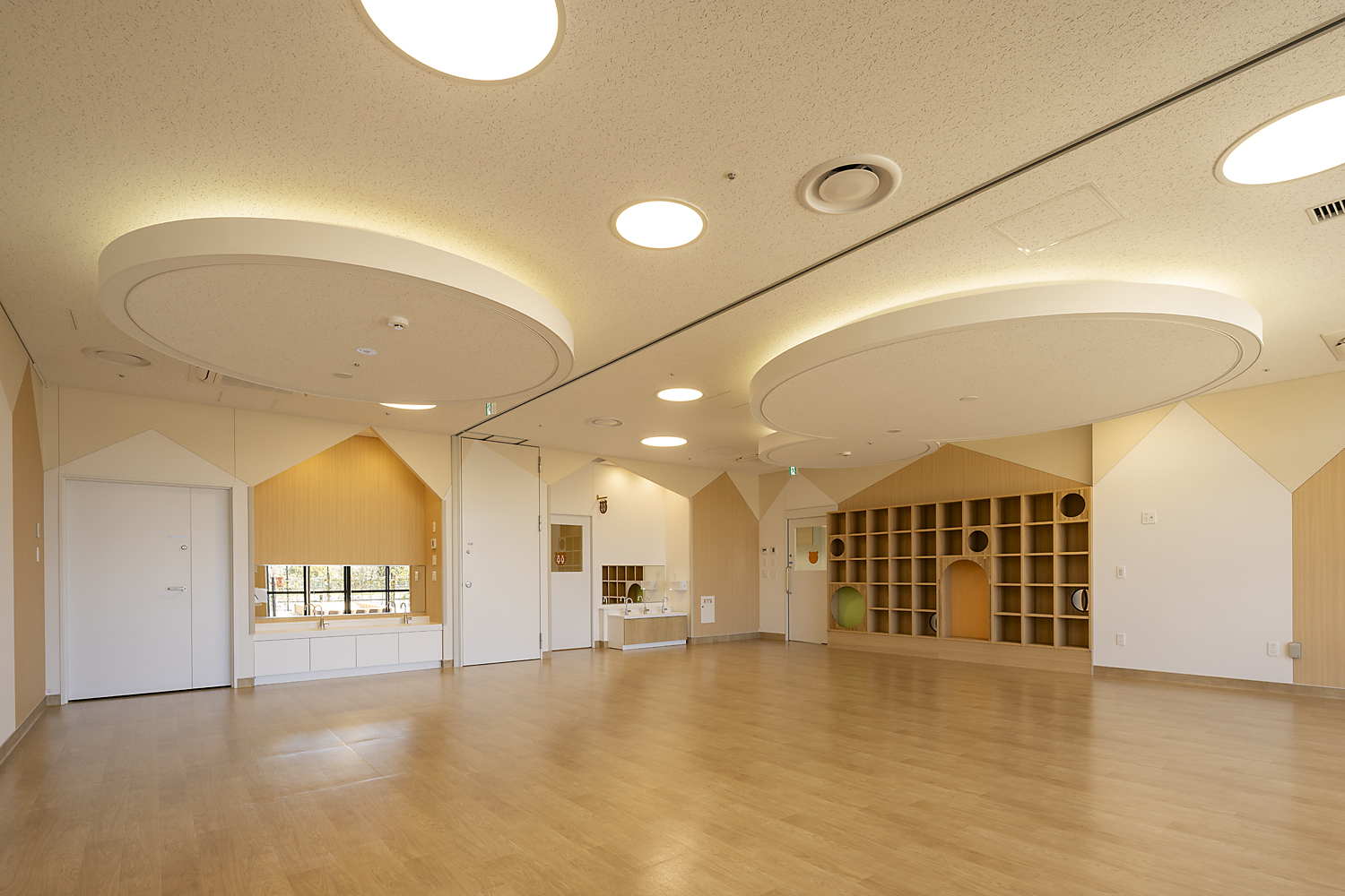 1階の一般保育室はより身近な場所で安心して子供(幼児)を預けられる環境を提供し、スタッフが働きやすい環境を整備しました。また病児保育室では地域家庭の働く環境への手助けを担い、病院に併設することで万が一の急変にも迅速に対応できる計画です。