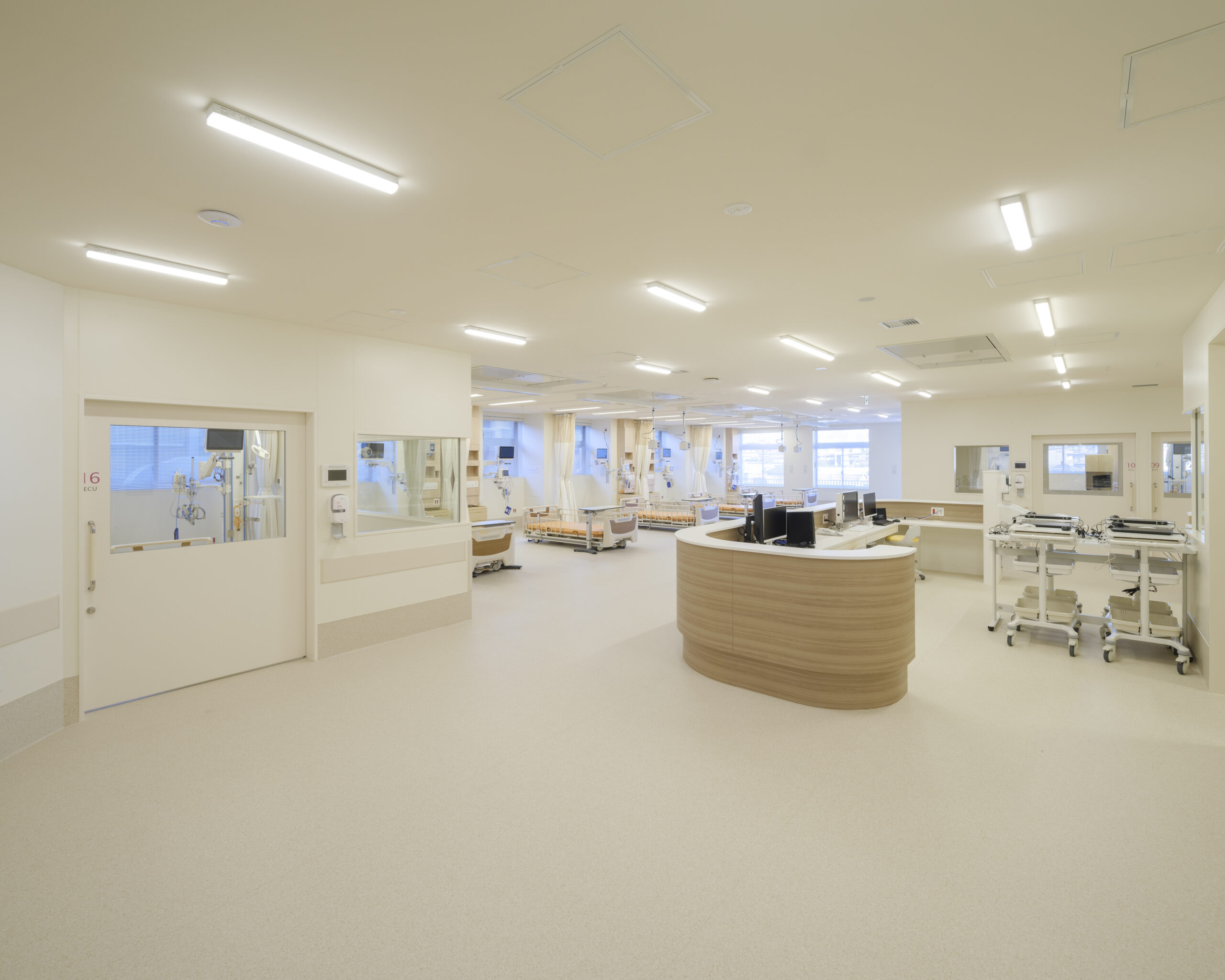 本計画に合わせ、災害対策(地震・水害の対策等)や感染症対策(発熱外来、感染対策病棟の整備等)も併せて行い、平時及び有事の様々な状況に対応できる環境を整備しました。